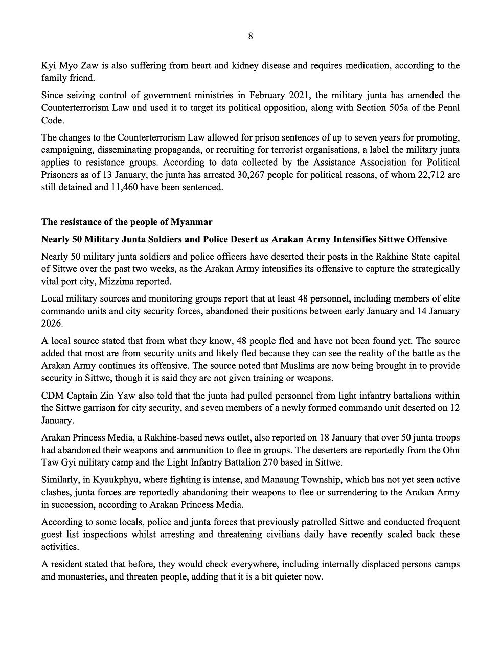 Letter dated 20 February 2026 from the Permanent Representative of Myanmar to the United Nations, H.E. Mr. Kyaw Moe Tun, addressed to the Secretary-General H.E. Mr. Antonio Guterres, on the heartbreaking situation in Myanmar, together with the Information Update on the current situation in Myanmar as of 15 January 2026.